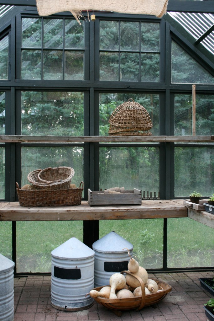Some sort of chicken waterer–found at an auction. I painted some chalkboard paint on them so I can mark what they hold. Potting soil, bird seed, etc. And I know, lots of windows to wash!!!