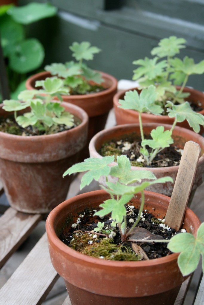 1. Really I had hoped to keep these in pots in the greenhouse and keep growing, hoping for a blooming Larkspur in a pot for Summer decorating…but I decided the ground would be safer! I started these from seed in February–so slow growing–I am not the most patient gardener!
