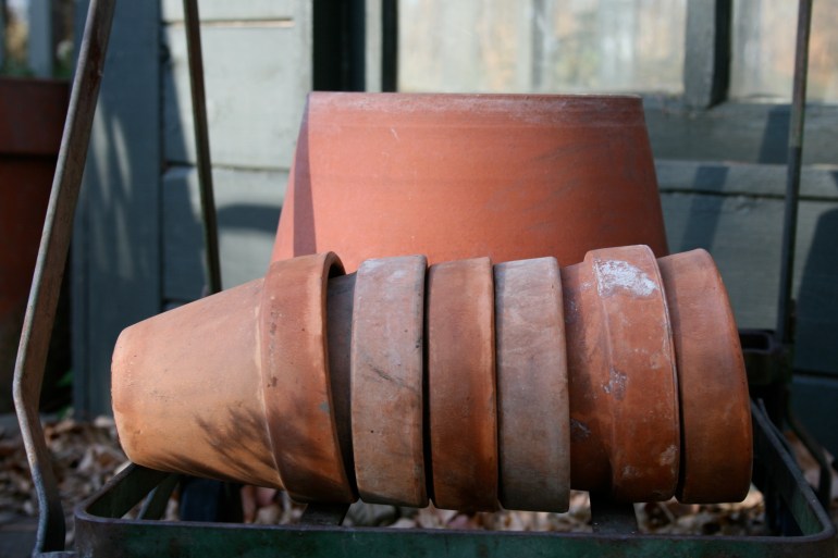 Two days of sunshine and warm temperatures helped me make progress on the painting and staining of the greenhouse and Rabbit Run Cottage-potting shed.