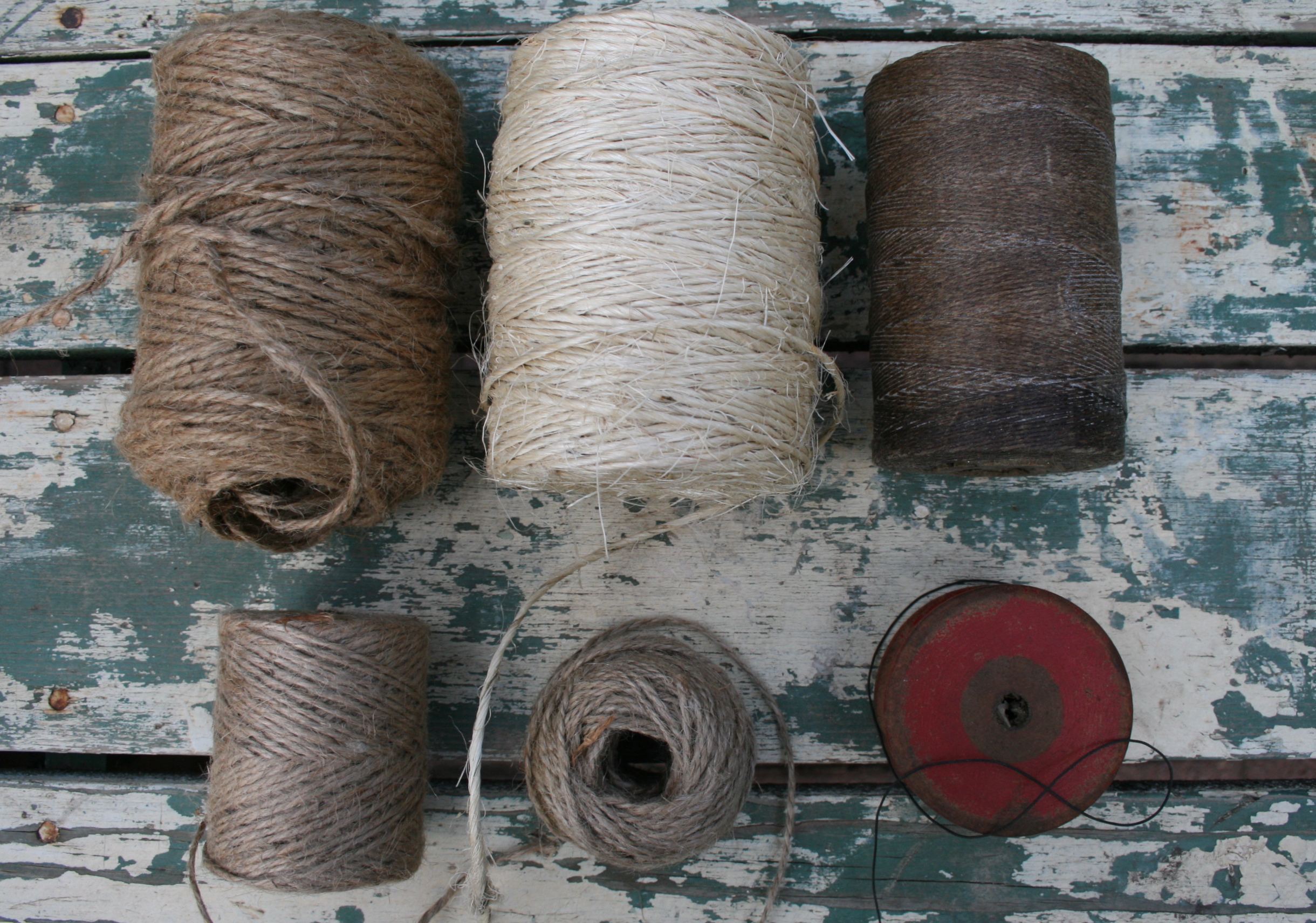 A old thread bobbin makes a perfect twine holder for the greenhouse.