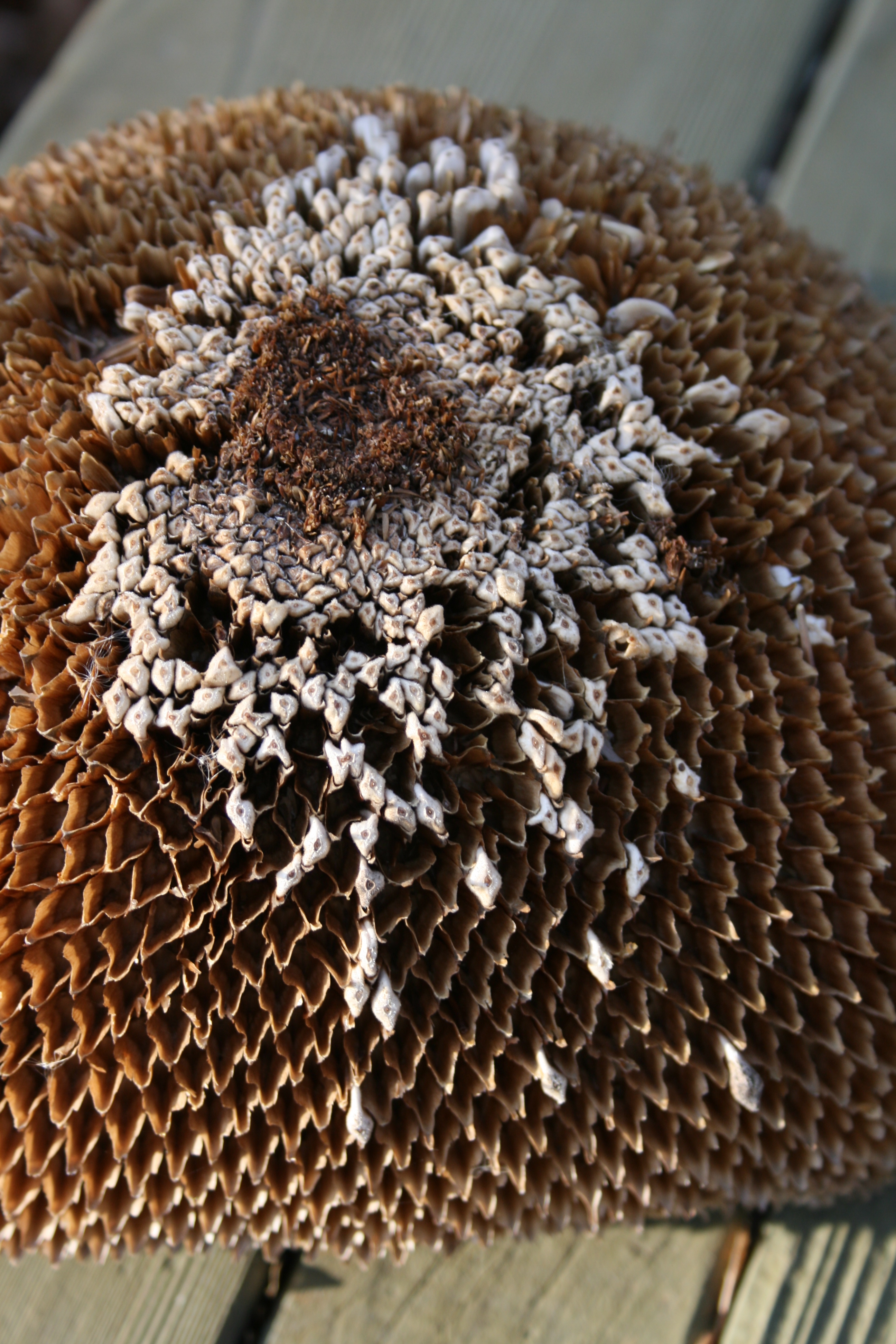 I dried a few Sunflower heads in the greenhouse for Autumn decorating.