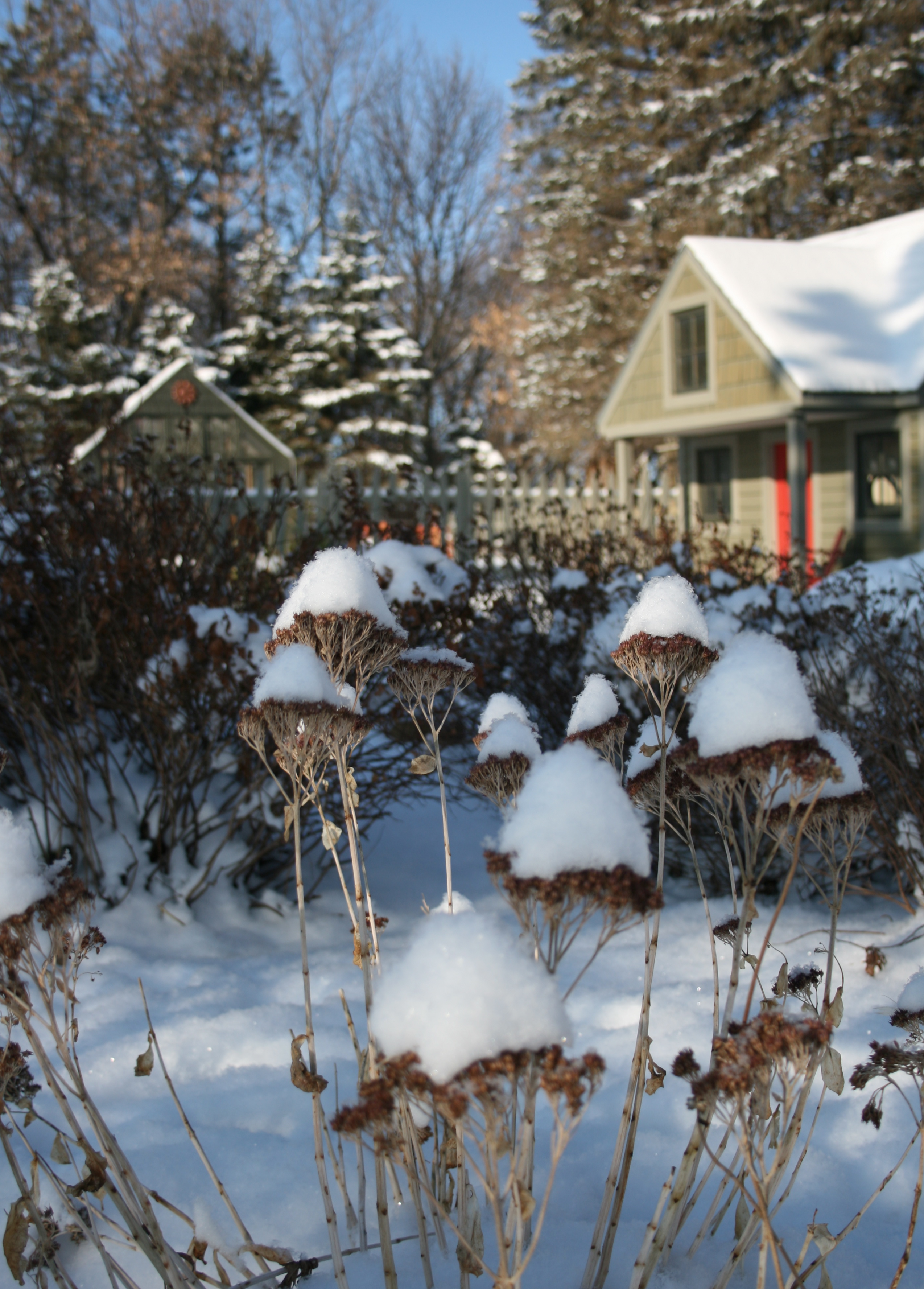 Winter Garden December 6, 2011Categories Uncategorized1 Comment on Winter Garden Sunshine and bitter cold. Plants are sporting their Winter caps. Share this: Click to share on X (Opens in new window) X Click to share on Facebook (Opens in new window) Facebook Click to email a link to a friend (Opens in new window) Email Click to share on Pinterest (Opens in new window) Pinterest Like Loading...