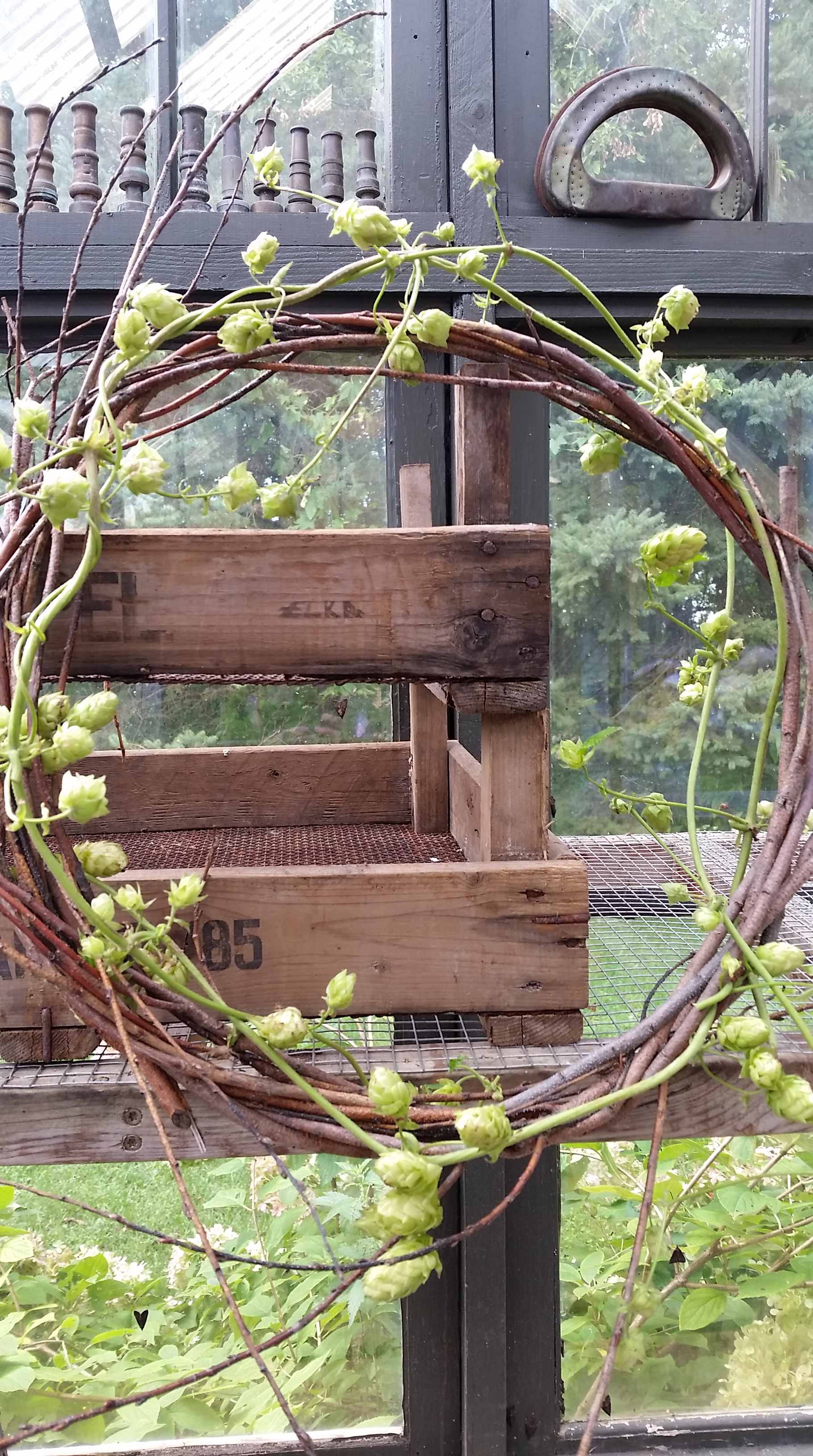 A grapevine wreath that I started in the spring and some Hops vines that I’m trimming.